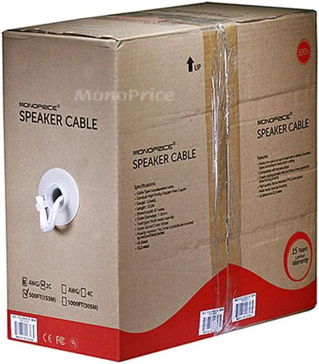Get the most out of your home audio system with high quality, oxygen-free, pure bare copper speaker wire from Monoprice! This speaker wire features two conductors made of high purity (greater than 99.95 percent pure), oxygen-free bare copper. Pure Bare Copper is a superior conductor to the copper clad aluminum (CCA) conductors used in most other inexpensive speaker wire. CCA is only about 68% as conductive as pure bare copper. This additional resistance is added to the impedance of your speakers and can negatively effect the sound.
