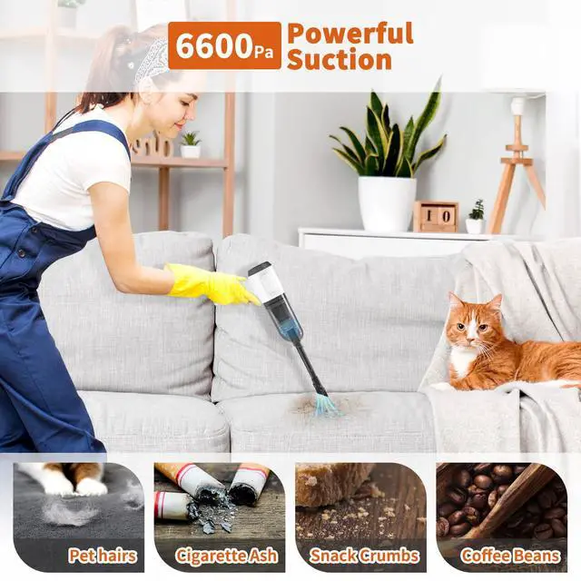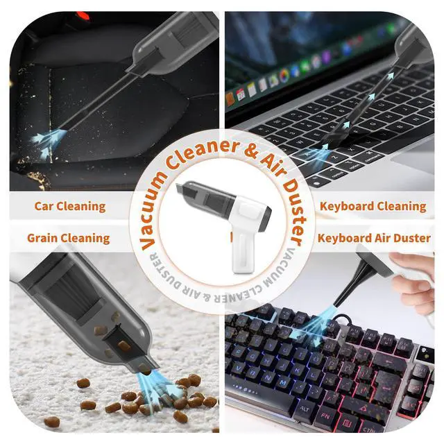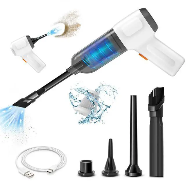 Handheld Vacuum & Blower3 in1 Cordless Car Vacuum for Pet Hair Keyboard Cleaning 6.5KPa Suction USB-C Rechargeable15Min Runtime, Lightweight 5 Nozzles