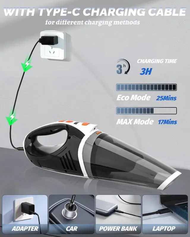 BRL Handheld Vacuum Cordless, Brushless Car Vacuum Cleaner with 12000PA Powerful Suction, 2 Suction Modes Mini Hand Vacuum, Dry & Wet, Portable Vacuum for Car Pet Hair, Home, Office, Keyboards