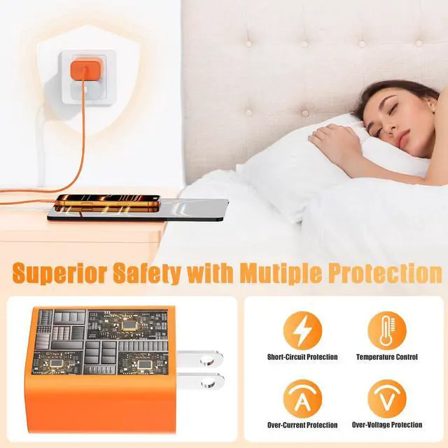 USB C Charger Block Safety and ReliableThe fast USB C charger features a built-in smart chip and multi protection system that auto detects your devices power needs adjusts accordingly and monitors temperature voltage to shield against overvoltage overcurrent overheating and short circuits ideal for daily use with iPhone 17 Pro Max .