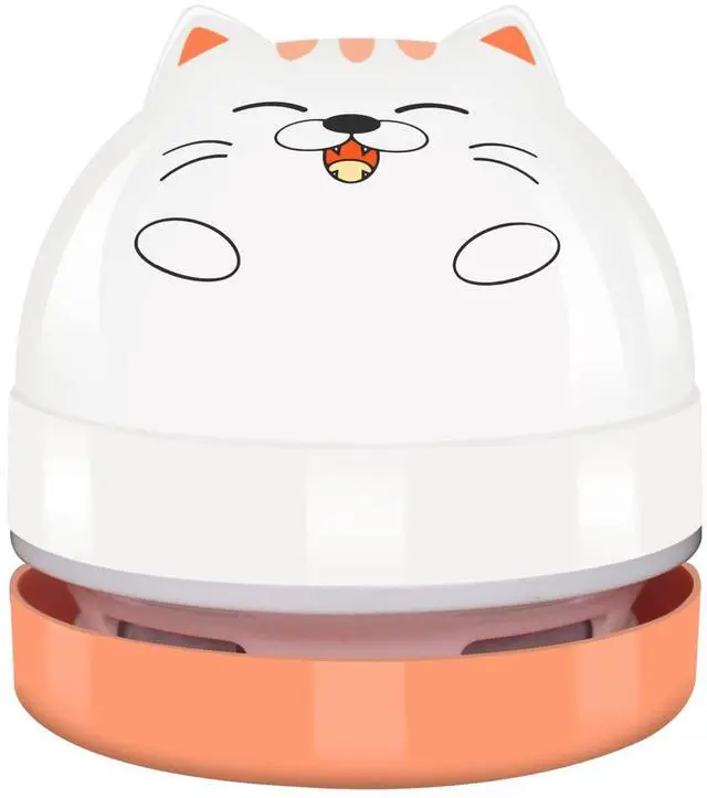 Mini Desktop Vacuum Cleaner, Portable USB Vacuum Cleaner for Desk Mini Cute Cartoon Desktop Vacuum for Cleaning Eraser Crumbs, Dust, Crumbs, Computer, Keyboard and Car (White Orange)