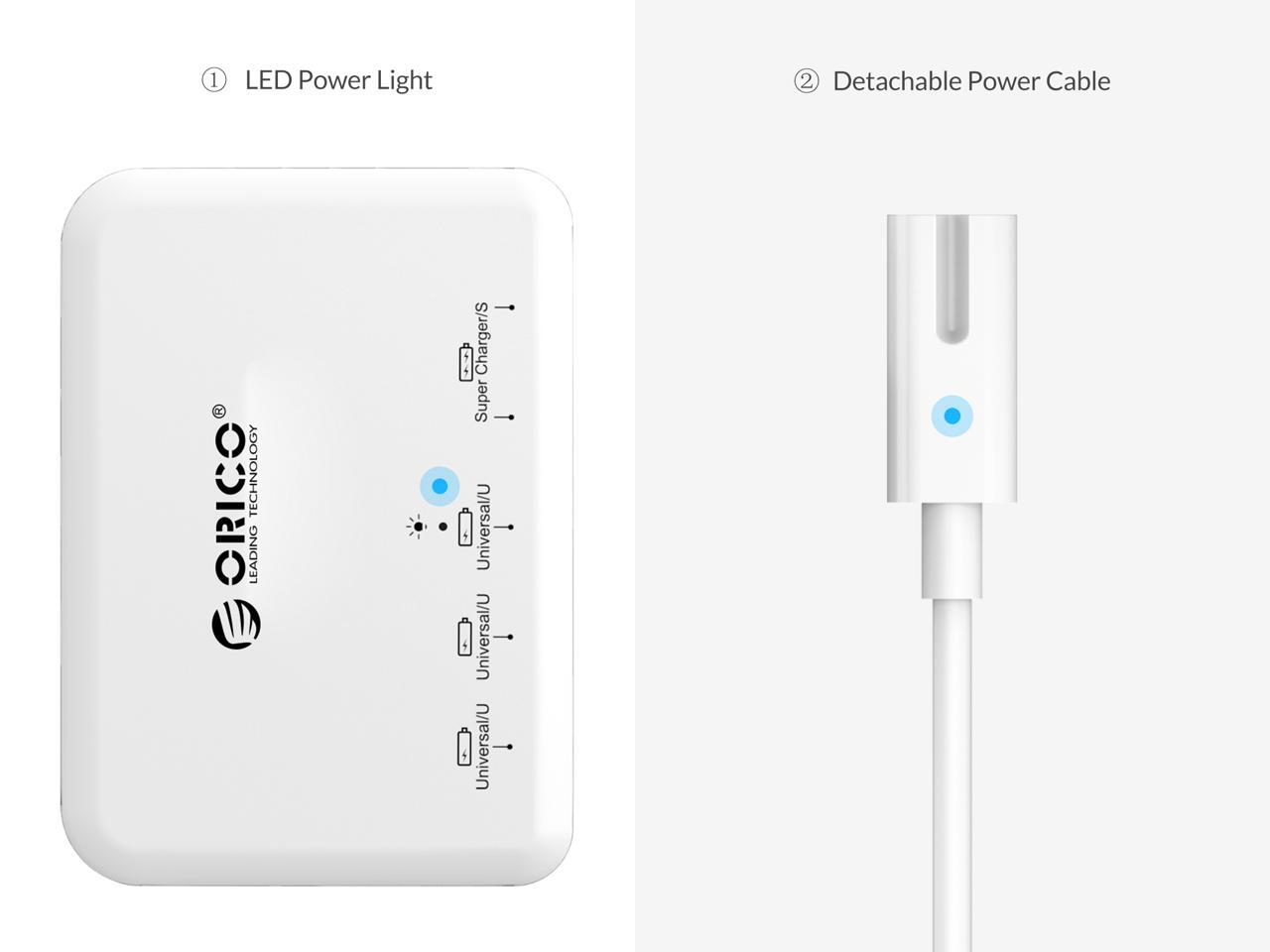 ORICO 40W 5 Ports High Speed Desktop USB Charger for iPhone 6s / 6 / 6 plus, iPad Air 2 / Mini 3, Samsung Galaxy S6 Edge / Note 5, HTC M9, Nexus and More - White ( DCAP-5S-US )