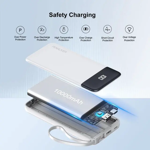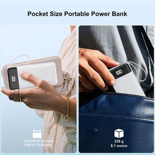 Portable Size & Large Capacity: With its thin size of 5.64*2.7*0.64 inch, and 8.1 ounce lightweight, this power bank has 10000mAh capacity, can meet most of the charging needs in all day. It supports Samsung S22 2 charges, iPhone 15 Pro 1.7 charges, Air Pods Pro 13 charges.