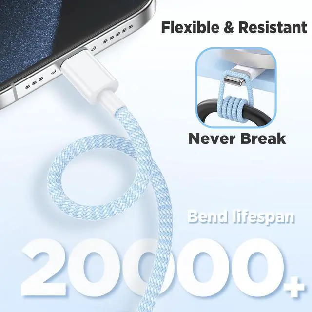 20W USB C Fast Charging for iPhone 17 Air/16/15 Pro Max, 3Pack Colorful Mixed Charger Block with Braided Long USB C to C Cables (6/6/10ft) Compatible with iPhone16/15 Pro/15 Plus/iPad Pro