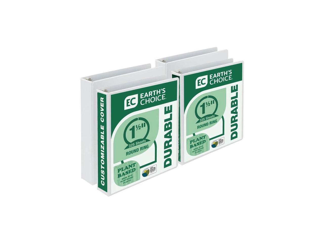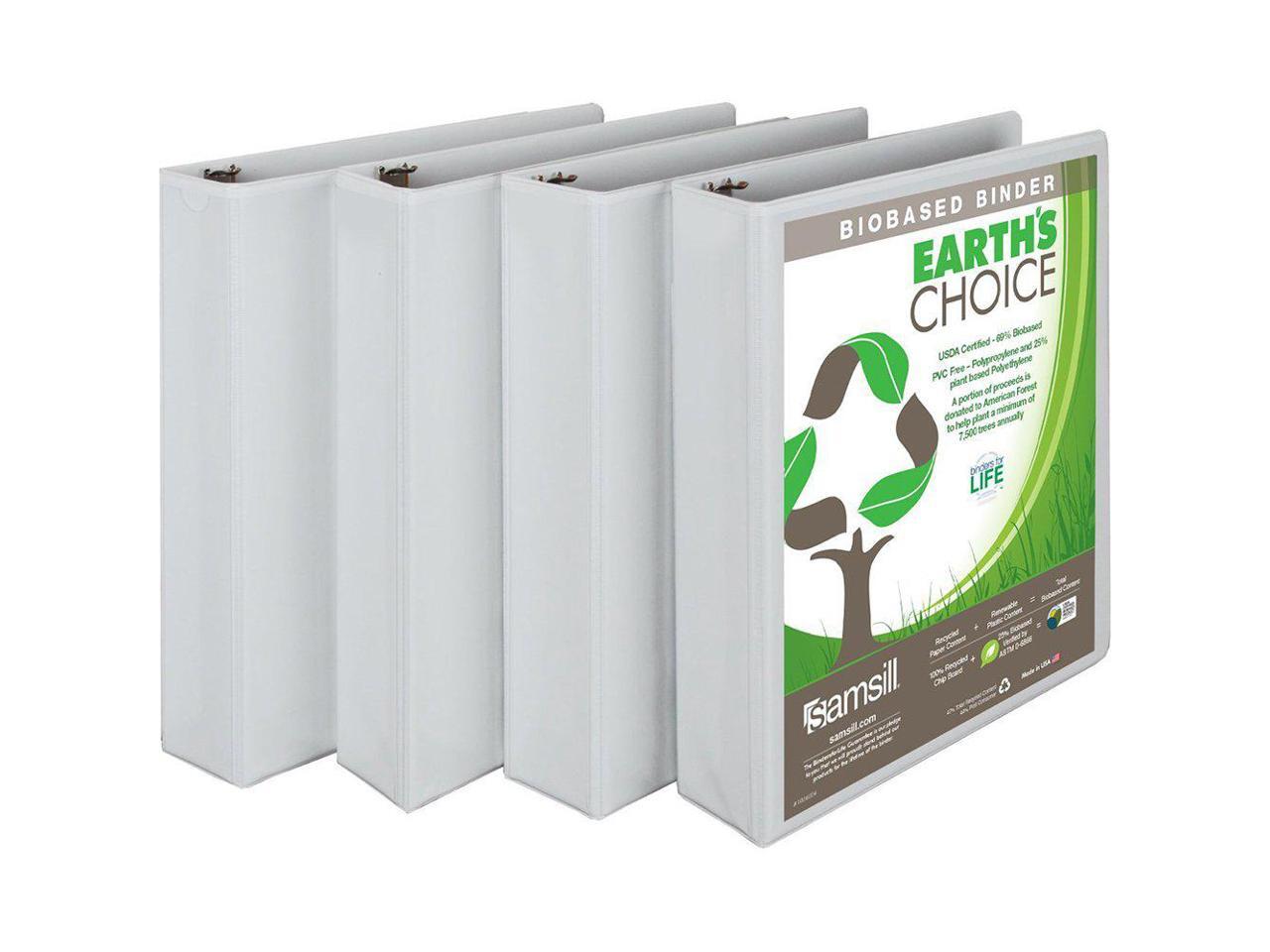Samsill I08957 Earth's Choice Biobased View Binder, 3 Ring Binder, 1.5 Inch, Round Ring, Customizable, White, 4 Pack