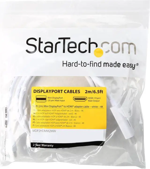 Eliminate clutter by connecting your PC directly to an HDMI display with a 6ft cable - Compatible with mDP enabled computers such as MacBook Pro or Air and HDMI enabled monitors televisions and projectors - Supports resolutions up to 4K - Mini DisplayPort to HDMI converter / MDP to HDMI cable / Mini DisplayPort to HDMI adapter / 4K DP to HDMI converter cable / 4K adapter cable - Install in your home workstation to make your Mini DisplayPort computer compatible with your HDMI display.