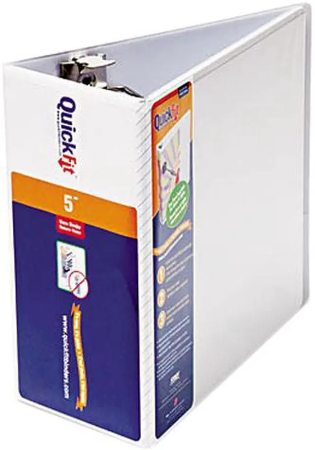 Unique overlay design allows you to use a single sheet of paper to create a custom one-piece presentation insert that wraps around the spine to the front cover for easy insertion and quick identification. Inserts can be printed using an 8 1/2" x 11" capacity printer. Visit www. quickfitbinders. com to design your insert. Ink transfer resistant overlay on spine, front cover and inside pockets. 2 clear interior pockets to easily identify contents. Back mounted rings allow pages to lie flat. Locking Angle D-Ring PVC-free material won't stick to cover inserts, photographs or papers stored inside.