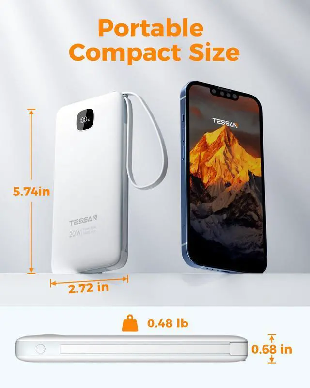 Only 0.68 inches thicknesses with the portable charger to carry anywhere.