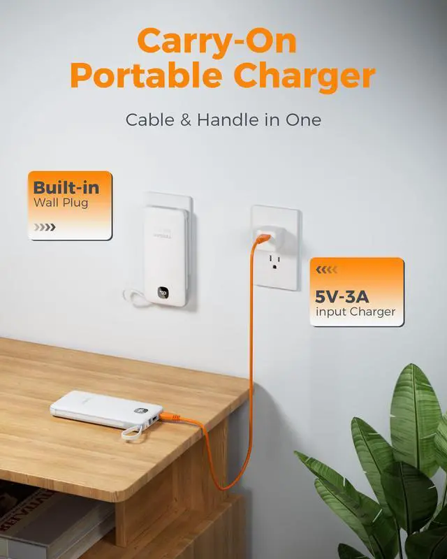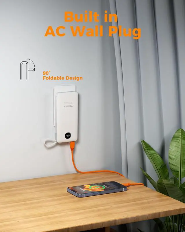 Built in foladable AC Plug to support recharging conveniently.