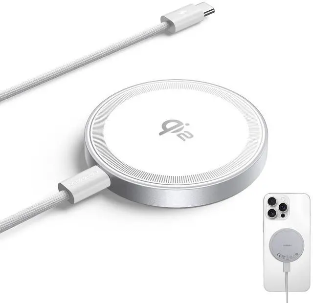 Qi2 MagSafe Charger, Magnetic Charger for iPhone 17/16/15/14/13/12 Series & Galaxy S25 Ultra, Qi2 Wireless Charger Dual-Sided Magnets, 15W Fast Charging Pad with 5FT USB-C Cable (White)