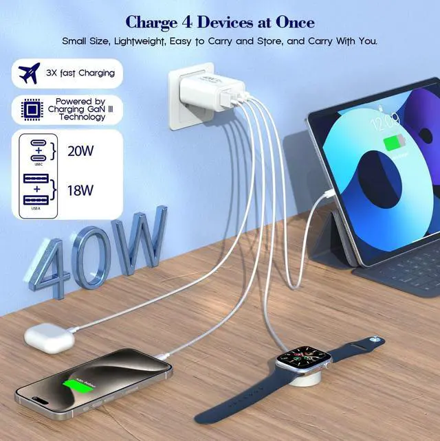 Multi-Port Charger, Avoid Wire Clutter, Convenient and Portable.