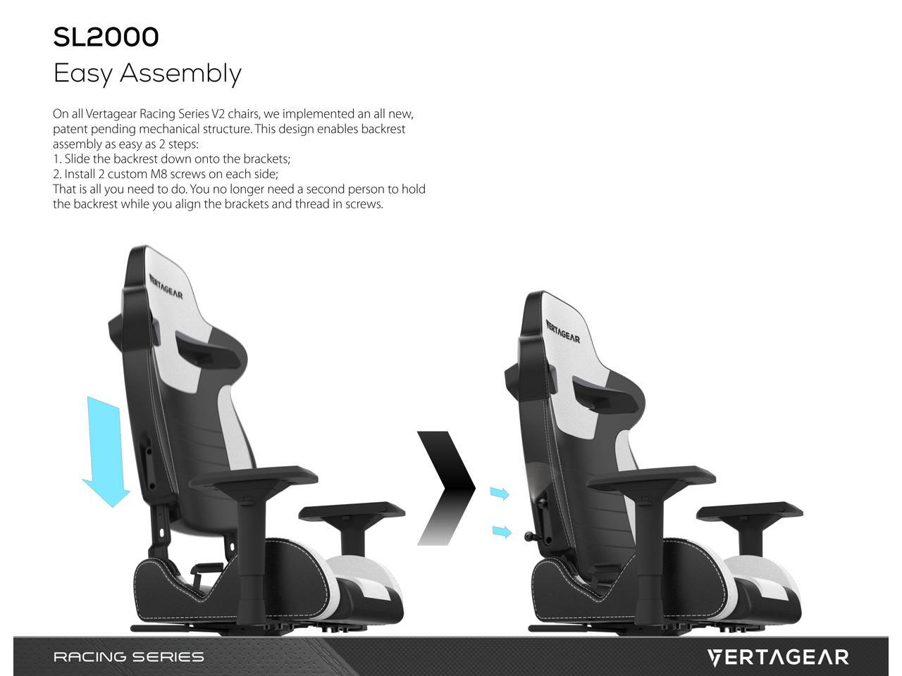 Vertagear S-Line SL2000 Racing Series Gaming Office Chair White Edition- White/Black (Rev. 2)