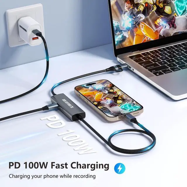100W PD Fast Charging + Ultra-Low Latency Stream and charge simultaneously with PD3.0 100W power delivery, eliminating battery anxiety for Switch/Steam Deck. Advanced chip ensures 5Gbps transmission, near-zero latency, and no screen tearingperfect for pro gaming or live broadcasts.