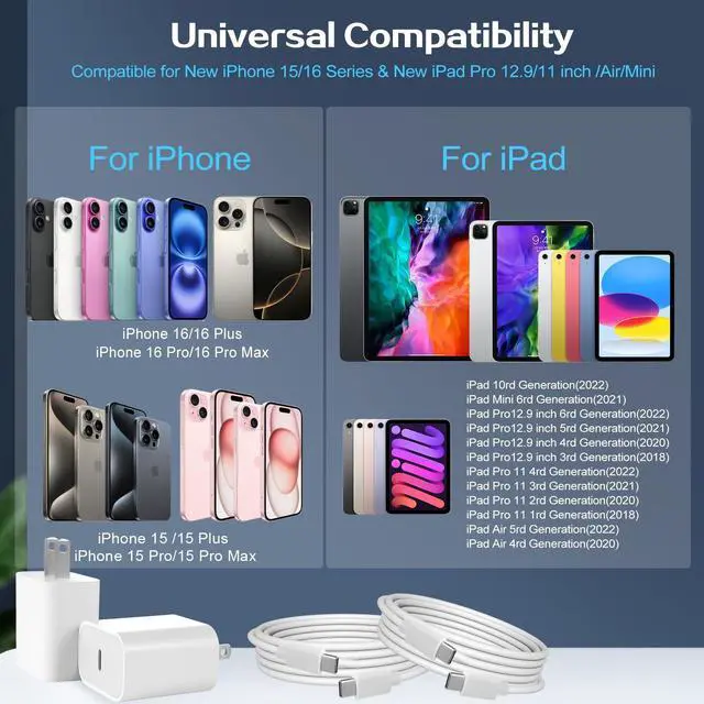 20W Super Fast USB C Charger for New iPad and iPhone 17 16 15 Pro Max