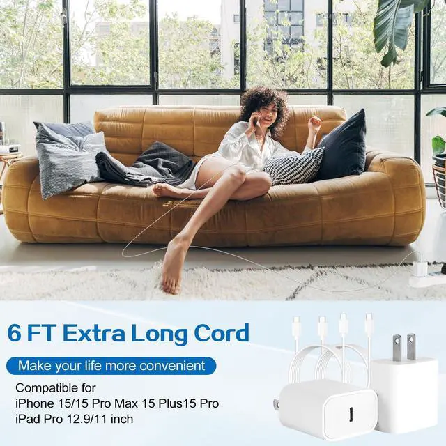 6FT USB-C to USB-C Charging Cable is Convenient for Usage While Charging and Sync at Home/Office/Travel in Bed,Hotel Rooms,and More.
