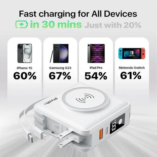 5. Charges your devices to 50% in 30 minutes;