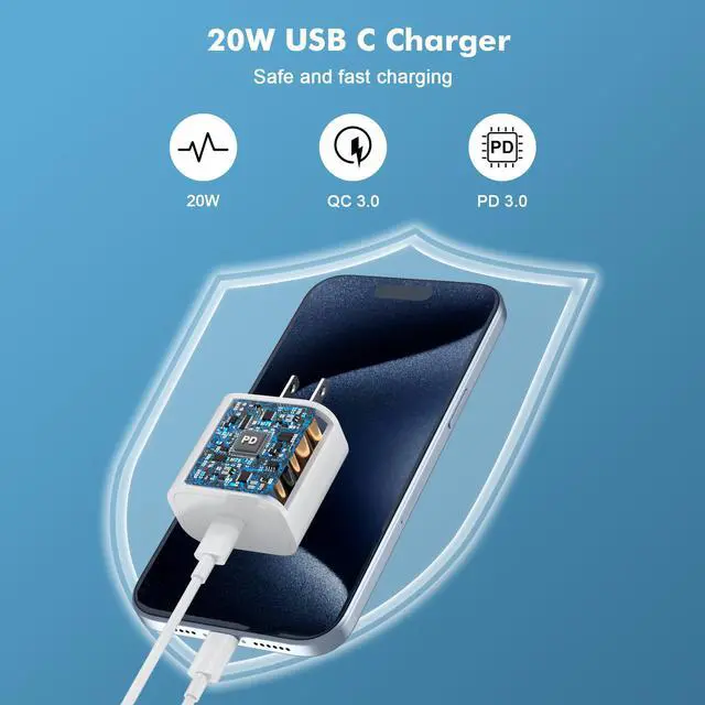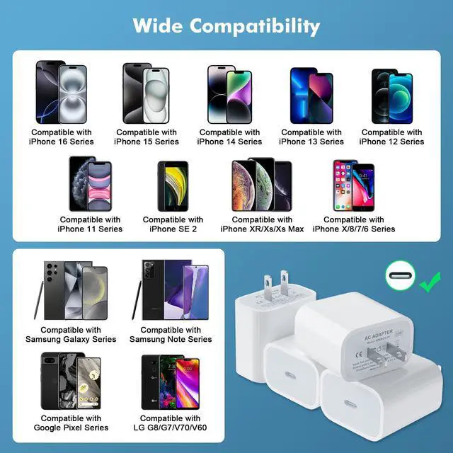 ![Main image of [4 Pack] USB-C Wall Charger, 20W USB-C Power Adapter Replacement for Phone 17/16/15/14/13/15 Pro/Pro Max/Plus/XS/XR/X,Galaxy, Pixel,i Pad and More](https://c1.neweggimages.com/productimage/nb640/C6BBD2604130M6WMR90.jpg)