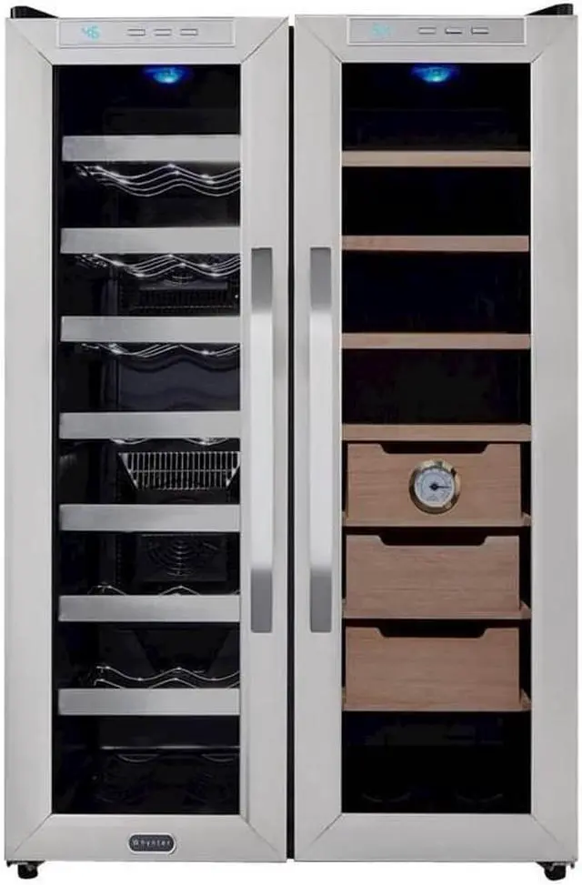 Wine Bottle Capacity: 16 standard 750ml wine bottles, Cigar Capacity: 350+ cigarsCigar Capacity: Holds up to 350+ cigars Freestanding setup Removable drawers and shelves Equipped with a humidity tray and hygrometer for inside humidity level maintenance Adjustable thermostat with temperature range for both zones (46 degree F - 66 degree F)