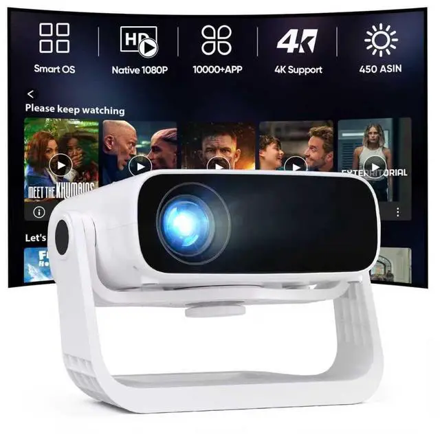 Smart Projector with WiFi 6 and Bluetooth - 4K Support 350Ansi Portable Bedroom Mini Projector Native 1080P, 2026 New Auto Keystone & Zoom Home Theater Cinema Movie Proyector, 120° Stand