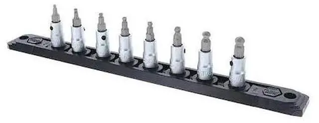 Ball End Hex Bit Set, No. of Pieces 9, Hex Shank Size 1/4 in, Impact Rated No, Includes 3/32, 764, 1/8, 9/64, 5/32, 3/16, 7/32, 1/4 in Bits, Storage Rail Holder, Bit Length 1 in. This item has been restricted from sale in the following state (s): []