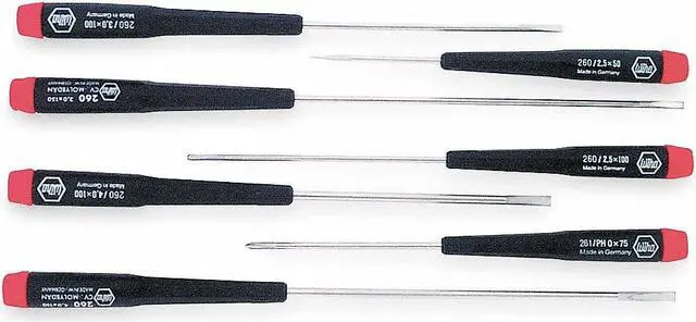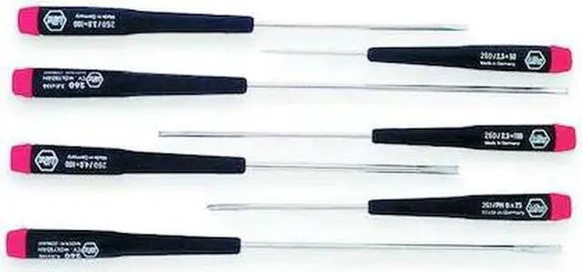 California Proposition 65: This product contains a chemical known to the State of California to cause birth defects or other reproductive harm. Precision Screwdriver Set, Tip Finish Chrome, 1/8 in, 3/32 in, 5/32 in, Phillips, Slotted, Ergonomic, Number of Pieces 7, No, ESD Safe No, Non-Sparking No, Measurement Type SAE, Includes Slotted 2.5 x 50mm, 2.5 x 100mm, 3.0 x 100mm, 4.0 x 100mm, 3.0 x 150mm, 4.0 x 150mm, Phillips #0 x 75mm, Corrosion Resistant Yes, Tether Ready No, Range of Shank Lengths 50 mm to 150 mm. This item has been restricted from sale in the following state (s): []