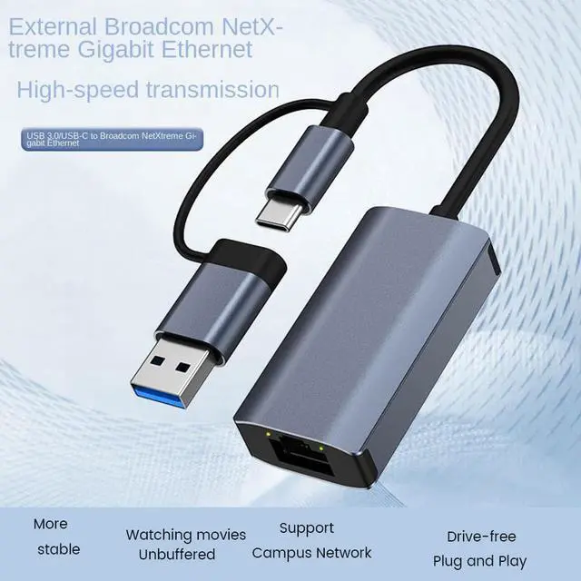 High Speed Network Connection: 2 in 1 USB 3.0/Type-C USB-C to ethernet provides faster data transfers. Downward compatible with 1000Mbps/100Mbps/10Mbps.