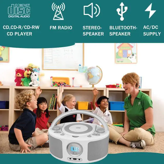- With classic appearance and simple operation, this portable cd player boombox is an ideal gift for your parents, grandparents, kids, uncles, aunts and friends!
