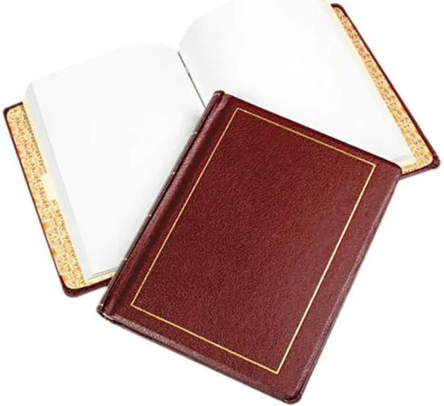 Minute book outfit can be permanently sealed. Design features gold tooling and short-pull locking mechanism. The stiff cover is bound over heavy board with no hubs and is made of imitation leather. Binder includes 125 pages of plain white ledger paper with 8-1/4" outside post spacing. Minute Book Outfit offers a 250-sheet capacity.