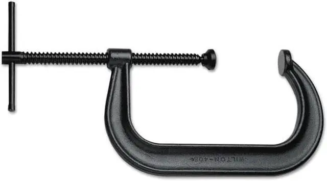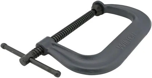 This Wilton 3" C-Clamp is a regular duty clamp with a throat depth of 2 1/2 in. and a max opening of 3 in. The 3500 lb. clamping pressure means this steel c-clamp can hold down most materials without slipping or shifting. It has a black oxide spindle finish that protects against rust and corrosion, making it an ideal tool for heavy duty jobs. With a powder coated body color, the c-clamp resists scratches and stains from oil and grease to keep its appearance clean. If you are looking for an affordable but durable c-clamp, the Wilton 403 Regular Duty C Clamp is what you need.
