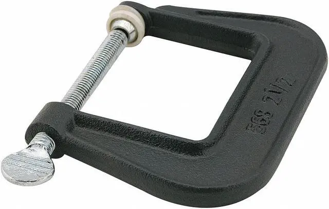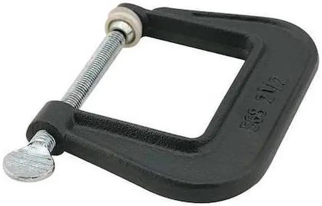 C-Clamp, Jaw Pad Type Flat, Includes Swivel Pad Yes, Jaw Opening - Maximum 1 1/4 in, Jaw Opening - Minimum 0 in, Throat Depth 1 3/16 in, Clamping Force 550 lb, Body Material Cast Iron, Body Color Gray, Spindle Finish Zinc Plated, Spindle Material Steel, Handle Type Thumbscrew, High Visibility No, Number of Anvils 1, Number of Spindles 1, Release Mechanism Standard Thread, Body Finish Powder Coated, Throat Shape Square