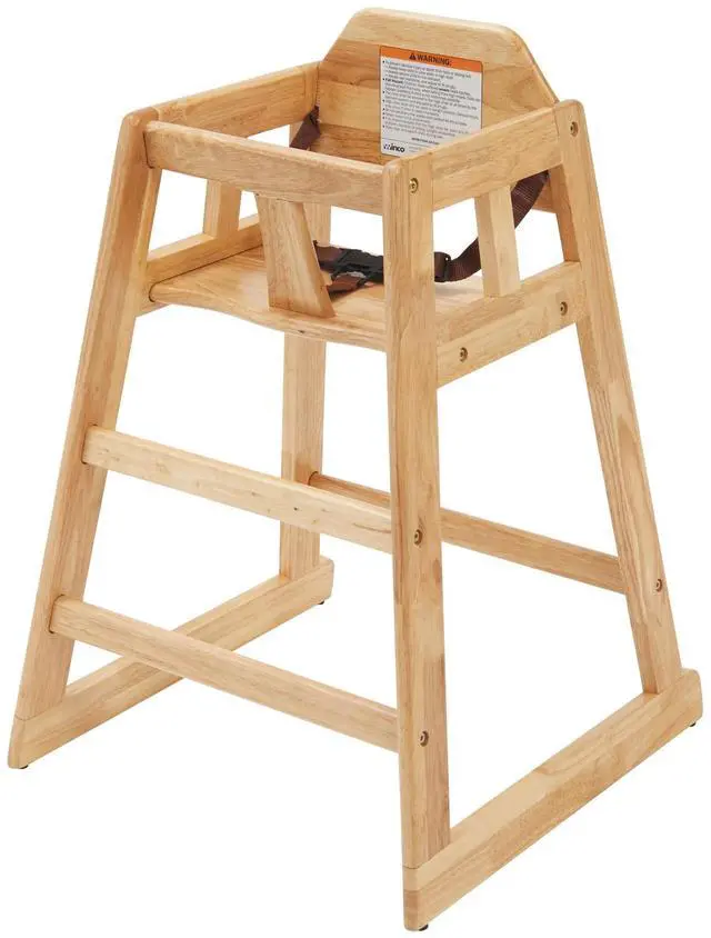 The CHH-101 stackable wooden highchair from provides a safe and secure dining experience for babies and toddlers. This is a commercial-grade highchair designed to withstand daily use in restaurants, hotels, cafes and even home dining rooms. This heavy-duty wood highchair features a 3-point safety strap with buckles to ensure children are secure. A specially designed bottom brace provides additional stability preventing the high chair from tipping allowing for secure footing on any flooring surface. This highchair has a high back and center T-bar to provide additional support and comfort for the child while dining. Highchairs can be stacked together when not in use for efficient storage. The smooth finished surface easily wipes clean with a damp cloth making cleanup a breeze. Measures 20 x 20 x 29" (L x W x H).