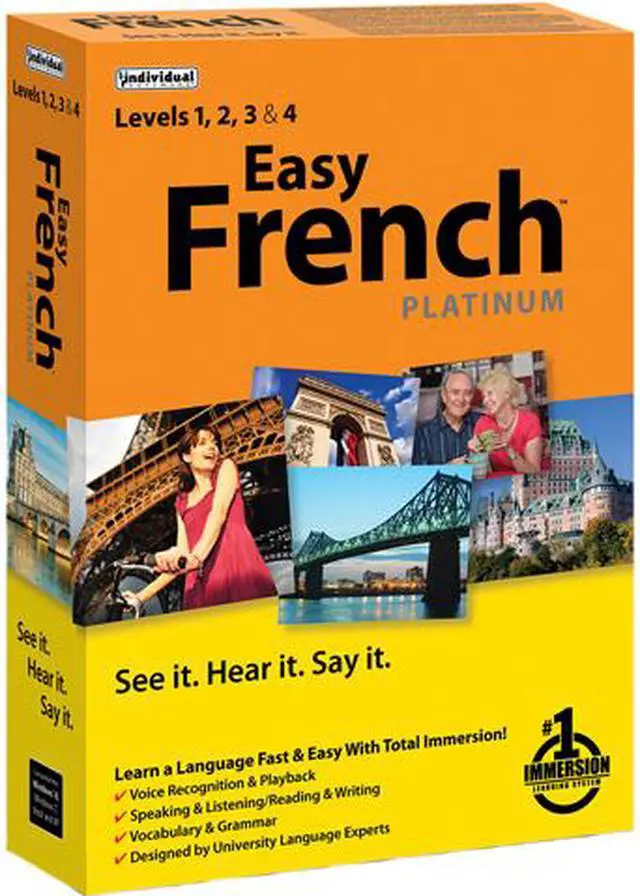 Easy French Platinum, designed by university language experts, is an interactive learning system that's proven to teach you French quickly and easily. With progressive learning lessons, speech recognition technology, and immersion learning, you'll have everything you need to become fluent in French. Build your vocabulary, practice real-world conversations, and perfect your pronunciation!