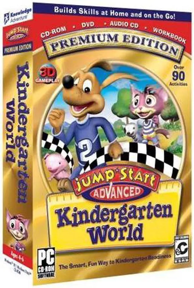 | Feature | Personalized learning that responds to your child's pace so that kids stay challenged and motivated; unique 3D design and immersive play Interactive learning design provides new play experiences every time your child signs on; parents get activity tips, helpful ideas, and progress reports Frankie's Field Trip interactive DVD teaches learn basic problem solving, letter sounds, telling time, directions and more through interactive sing-along songs, mini-games and activities Your child will be grooving to cool tunes on the JumpStart Sing-Along CD while learning fundamental Kindergarten skills JumpStart Advancement Workbook allows your child to continue the learning wherever you go, and provide offline practice for the key skills presented in each part of the JumpStart Advanced Premium Edition learning system |