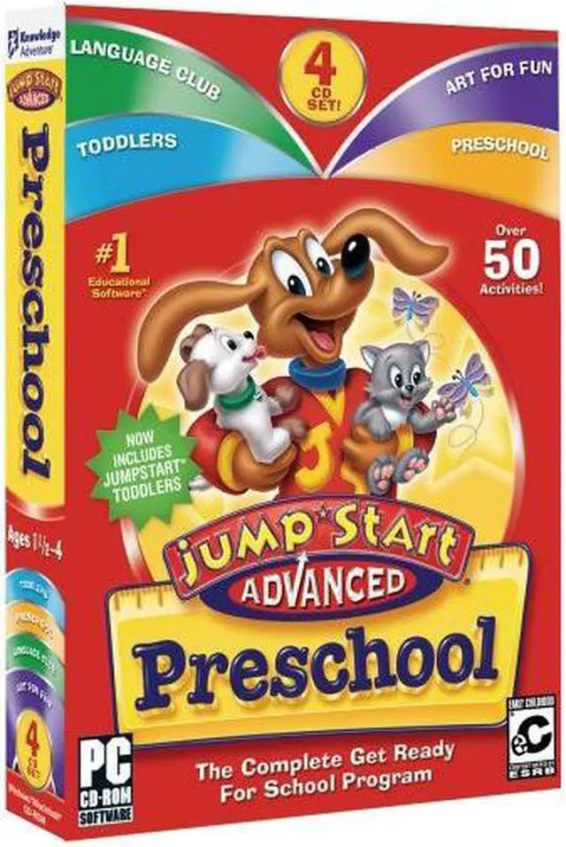 | Feature | JumpStart Advanced Preschool is the complete Get Ready for School program. Now including JumpStart Toddlers,these preschool games deliver more fun and enriching learning activities than ever in this 4-CD set. Kids learn over 50 skills in counting, music, art, languages and more. Prepare your child for the future with our preschool games. |