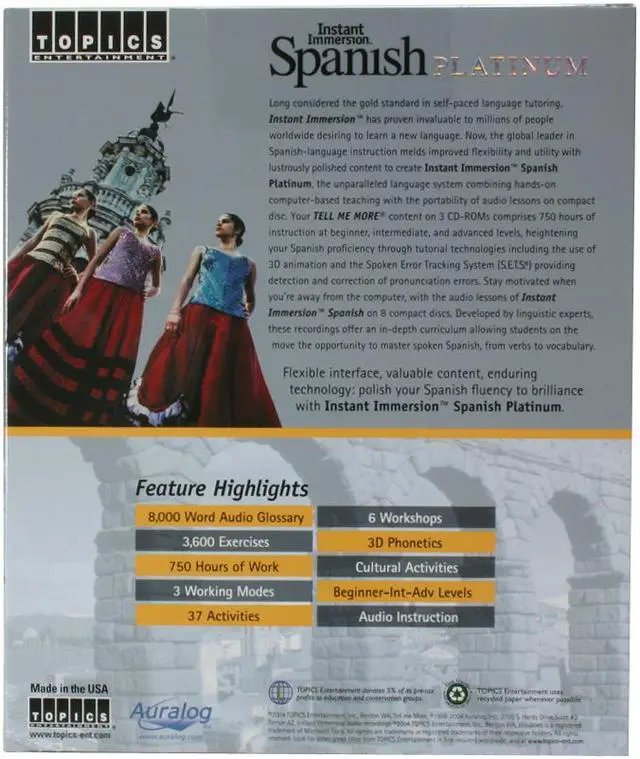Perfect for beginner, intermediate, and advanced levels, Instant Immersion Platinum contains over 750 hours of learning, featuring over 3,600 exercises and activities to maximize retention, speech recognition and pronunciation.