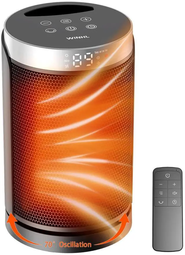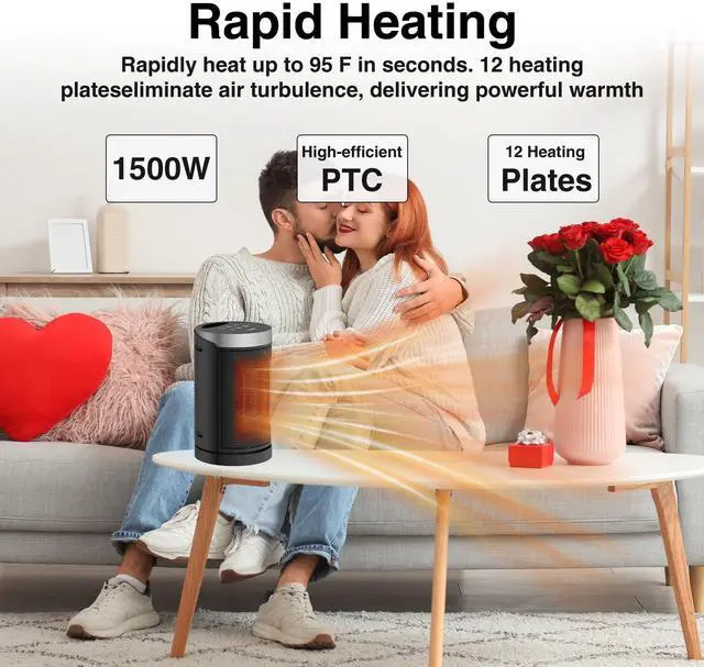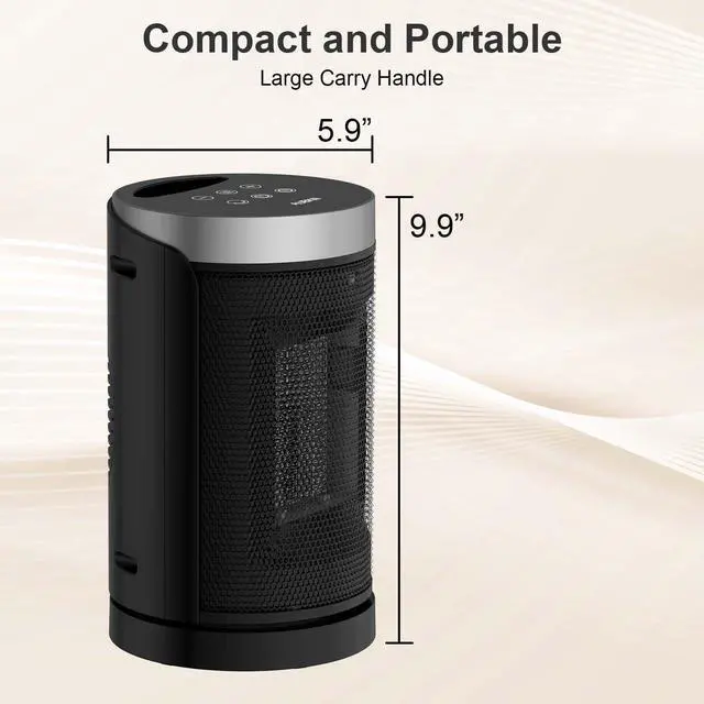 This small space heaters for indoor use is designed for winter heating, equipped with a powerful ceramic heating element that heats up quickly and warms every corner. With a wide-angle automatic rotation feature, it distributes heat evenly, making it ideal for small spaces like bedrooms and offices. The built-in smart remote control allows you to adjust the temperature, mode, and timer settings remotely, providing convenient operation. It includes multiple safety protections, such as overheat protection and tip-over shut-off, ensuring safe use. The stylish and compact design saves space while effortlessly meeting your heating needs.