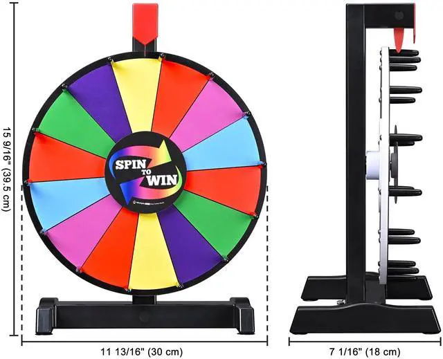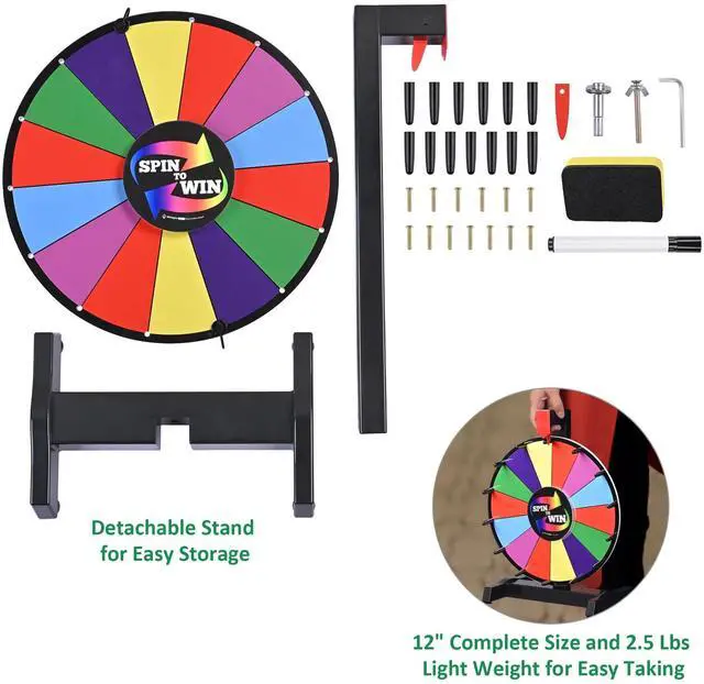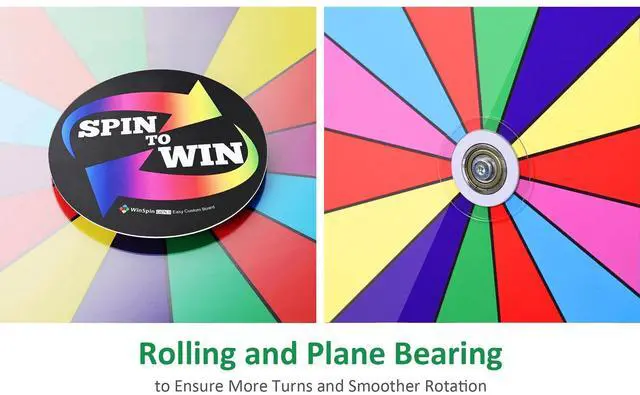 -Tabletop Use: This WinSpin 12" spinning prize wheel features tabletop use, enabling use even in small and restrictive spaces, ideal for tradeshow, lecture, or entertainment at home parties, gatherings, classrooms, etc. We offer exclusive personalization, please reach out to us to discuss your vision and bring your custom wheel to life .
