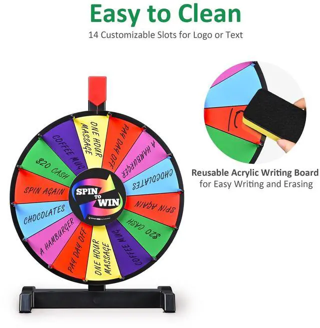 - Customizable & Editable - Features a colorful template with 14 customizable slots for logos or text, allowing you to create customized games and prizes according to your needs, along with rewritable acrylic writing board for easy writing and erasing