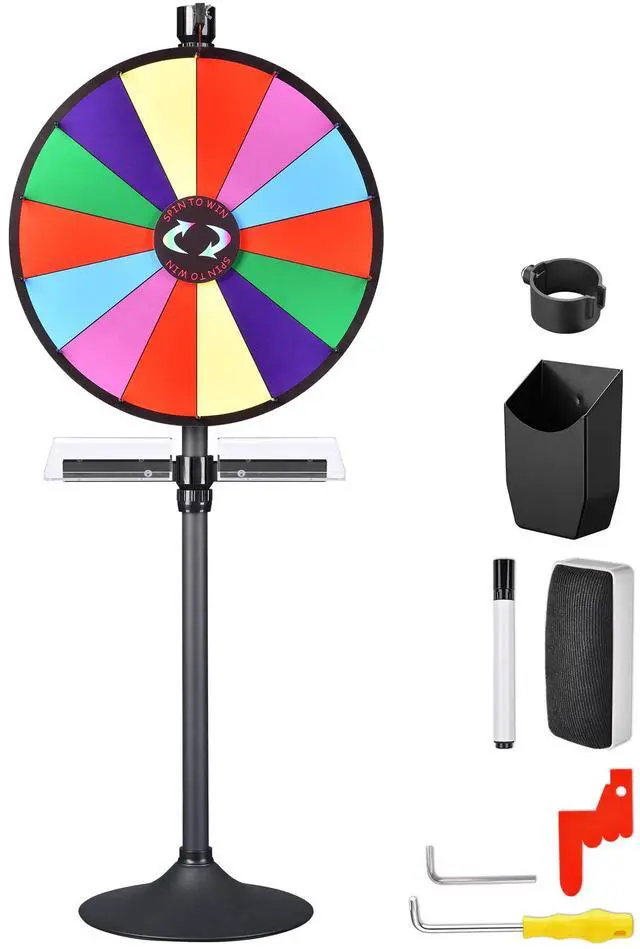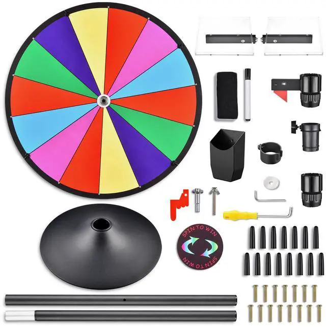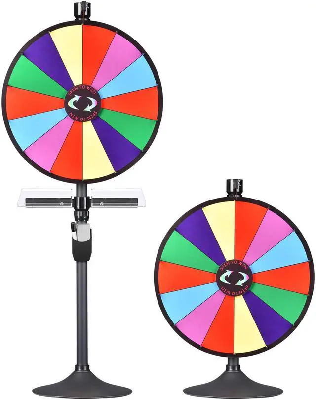 - Tabletop & Floor Stand Use - WinSpin 24" Color Prize Wheel can be placed on the tabletop with 1 pole & base or stand on the floor by connecting 2 poles, making it possible to use on different occasions, ideal for trade shows, carnivals, parties, supermarkets, etc