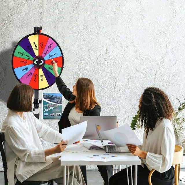 - Tabletop & Floor Stand Use - WinSpin 24" Color Prize Wheel can be placed on the tabletop with 1 pole & base or stand on the floor by connecting 2 poles, making it possible to use on different occasions, ideal for trade shows, carnivals, parties, supermarkets, etc