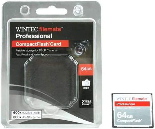 | Features | Reliable storage for DSLR Cameras with fast read and write speeds UDMA 0-6 enabled Wear Leveling Technology MLC Flash Memory Operating Temp: 0°C to 70°C Voltage Support: Dual voltage support 3.3V/5V Operating System: Windows 2000, XP, Vista, 7, Mac OS 10.x or later Certification: - CompactFlash Association - CompactFlash 4.1 standard - RoHS, FCC, CE Package includes: - Wintec FileMate CompactFlash Card - Card holder |