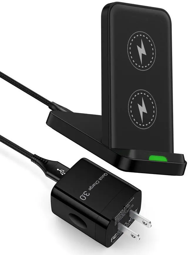 1. Wireless Charger Phone Holder Stand with block Convenience Comes with 1 sleek wireless charging stand with USB fast charger block, perfect for home and office, or shared use with family. Charge your Android and iPhone at a fast speed with reliable performance.