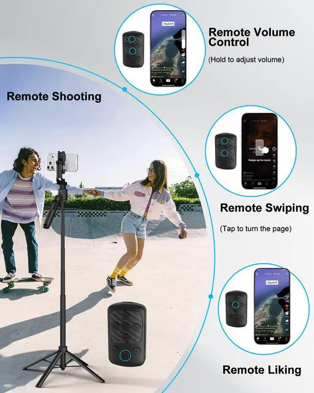 Versatile Design: This all-in-one phone stick combines a selfie stick and floor tripod. It extends from a compact 13.8in to a tall 70in for high-angle shots. Lightweight at just 1.24lb, it's your portable photography companion, easily fitting in a backpack for travel and daily use as a tripode para celular.