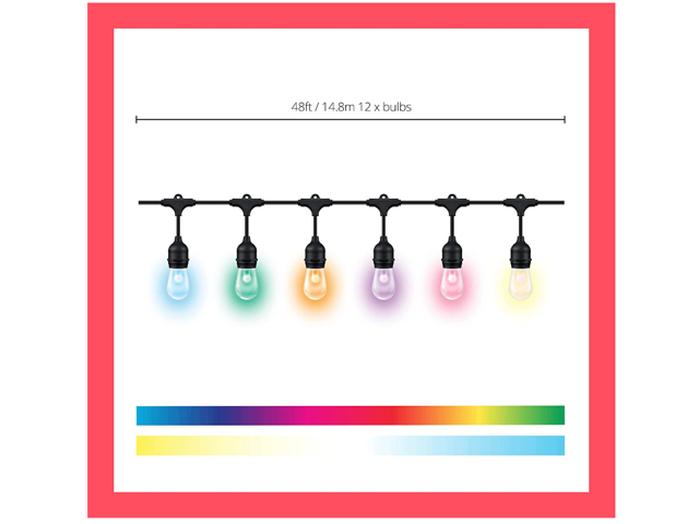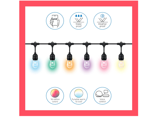WiZ Connected 48ft/15M Outdoor WiFi Color String Lights, 16 Million Colors, Adapter Included, Smart Control with Wiz App, Compatible with Alexa, Google Assistant, and Siri Shortcuts, No Hub Required