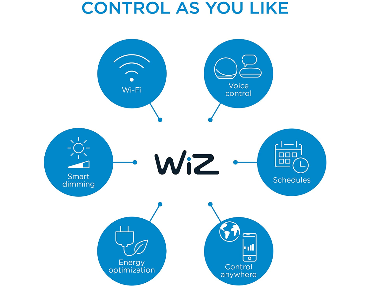 - Smart control. Control with the WiZ app or voice assistant.