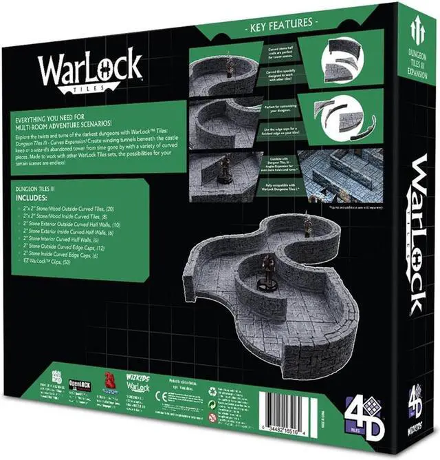 EVERYTHING YOU NEED FOR MULTI-ROOM ADVENTURE SCENARIOS! Explore the twists and turns of the darkest dungeons with WarLock™ Tiles: Dungeon Tiles III - Curves Expansion! Create winding tunnels beneath the castle keep or a wizard’s abandoned tower from time gone by with a variety of curved pieces. Made to work with other WarLock™ Tiles sets, the possibilities for your terrain scenes are endless!