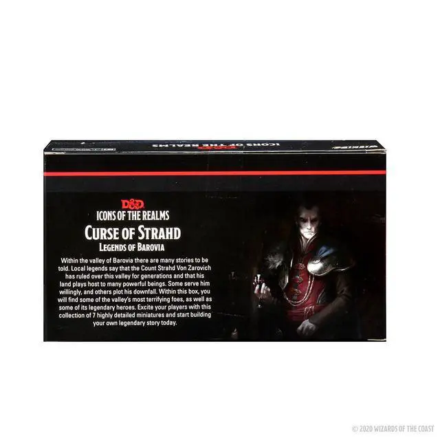Within the valley of Barovia there are many stories to be told. Local legends say that the Count Strahd Von Zarovich has ruled over this valley for generations and that his land plays host to many powerful beings.Some serve him willingly, and others plot his downfall. Within this box, you will find some of the valleys most terrifying foes, as well as some of its legendary heroes. Excite your players with this collection of 7 highly detailed miniatures and start building your own legendary story today.