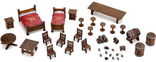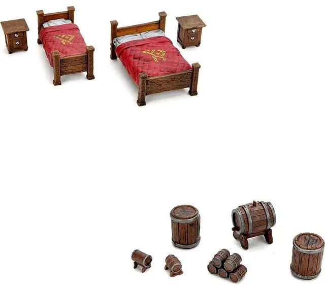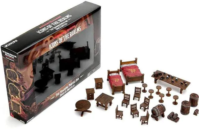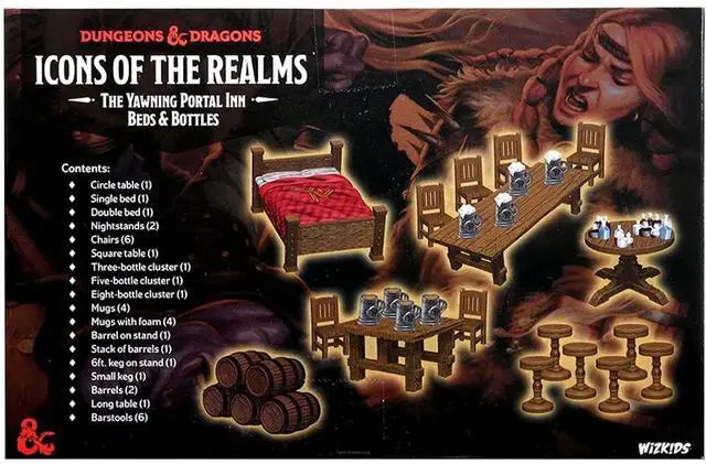 Make sure you have everything you need for a memorable game night at D&D Icons of the Realms: The Yawning Portal Inn! With Beds & Bottles, you?ll enjoy a variety of tables and chairs, kegs and barrels, and even two styles of beds to help set the scene. Waterdeep?s popular gathering place is ready to come to life at your table. Experience the magic of Dungeons & Dragons with the "D&D Icons of The Realms: The Yawning Portal Inn - Beds & Bottles" by WizKids. This collectible set, a part of the larger Yawning Portal Inn series, features 36 meticulously crafted pieces, including beds, tables, chairs, and various bar elements. Whether you're assembling the iconic tavern scene or creating your own unique setting, these miniatures bring the beloved RPG to life. Immerse yourself in the world of D&D with this set, ideal for game masters and players looking to enhance their tabletop experiences. Dive into the adventure with this exquisite collection from WizKids
