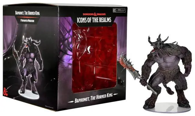 Embark on a journey into the realm of savagery and strength with the "WizKids D&D Icons of The Realms: Baphomet, The Horned King." This exquisitely pre-painted miniature is a testament to WizKids' commitment to quality and attention to detail, capturing the essence of Baphomet, the Prince of Beasts. Standing just below 4.5 inches tall on a 75mm base, this figure imposes a powerful presence on any tabletop.