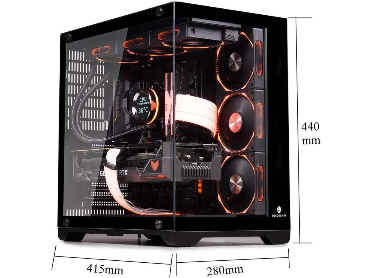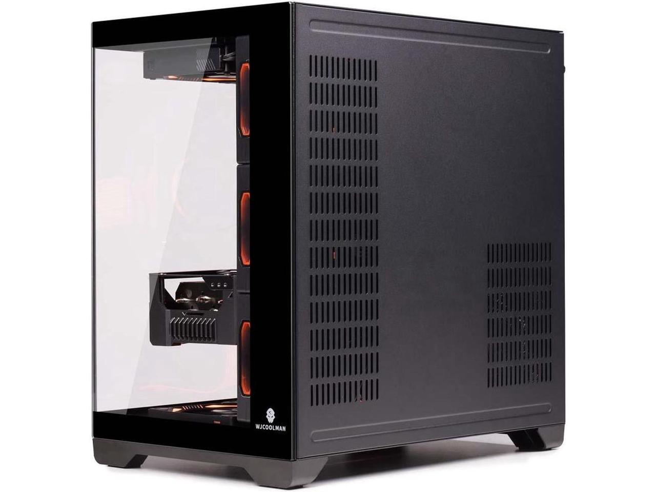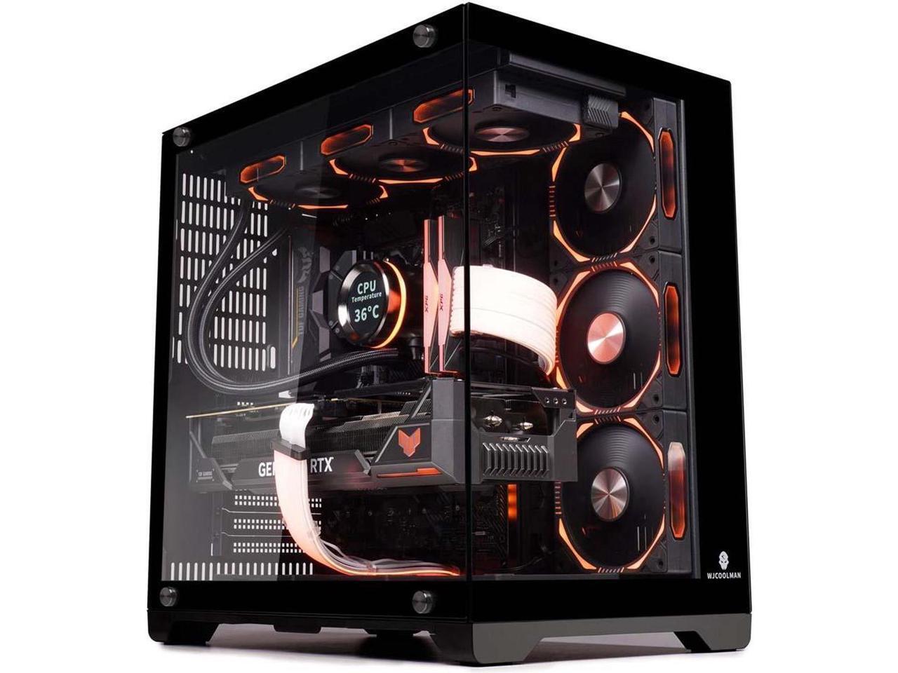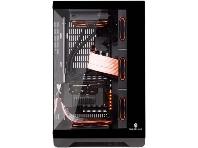 WJCOOLMAN Lonely Warrior PRO Black Computer Case Panoramic Version 2 Sides Transparent Glass Gaming Chassis Support 10 Fan Positions 360 AIO Support ATX/M-ATX Gming Case High-Airflow Design